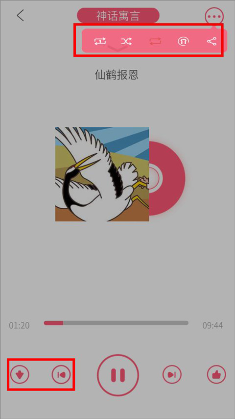 4、进入播放页面,用户可下载音频、设置播放模式、分享、切换下一首。