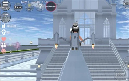 2要是你手头的钱不多,那就前往蛋糕店附近那座红色的房子,将其破坏后去换上孕妇装。这时建筑工人会用炮弹攻击你,你只需站在他们跟前等着收钱就好啦。便利店的左边能找到一些钱,税务局的房顶上也有一点钱,而税务局局长的金库里则存放着50万。