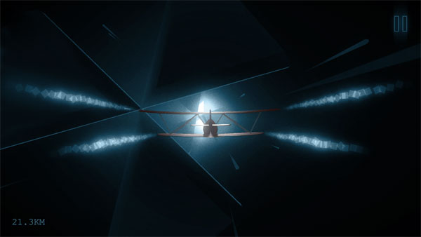2、游戏玩法极为简单,只需通过左右手指上下左右滑动,就能躲避靠近的障碍物,穿过中间的缺口。在持续向前飞行的过程中,左下角会显示当前飞行的距离。只有当撞击到障碍物时,游戏才会直接结束。