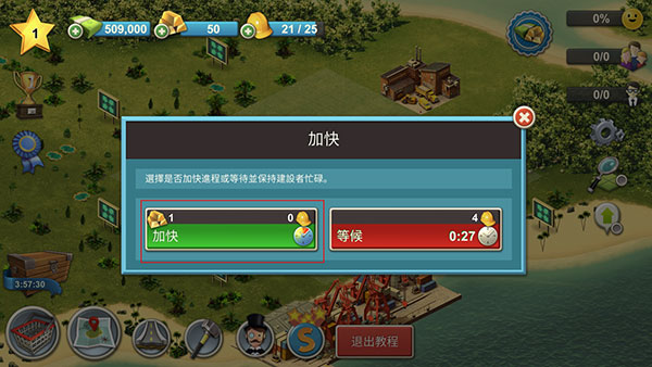 6、倘若觉得建造速度太慢,可点击小房子,接着点击“加快”,这一操作需花费一个金条。
