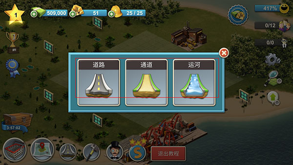 7、然后再点击建造过车道路、人行通道或者水运河;