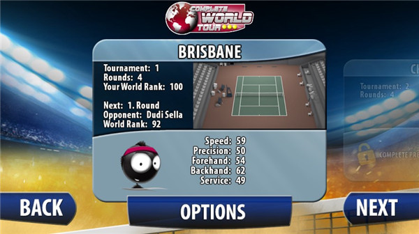 4、游戏提供六种游戏模式和十个国际网球场地。
