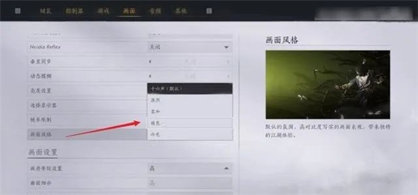3、当进入游戏后,画面设置是玩家首要考虑的方面。《燕云十六声》的画面风格较为深邃,亮度相对较低,尤其是多地宫的设定,导致大部分场景都极为昏暗。所以,建议玩家把画面风格调整为暖色或者柔和,以此来提高游戏体验。
