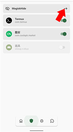 2、往下滑,找到Magisk选项,然后开启MagiskHide选项