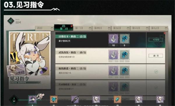 3、见习指令为本次“云环测试”期间举办的特别活动。在测试期间,每日都会解锁全新的见习指令任务。