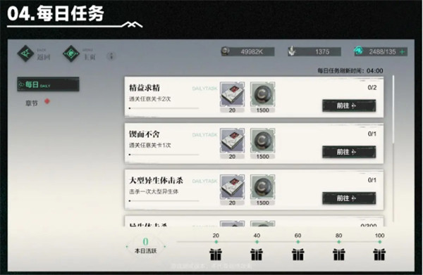 每日任务会在每日凌晨 4 时刷新,一定要记得完成,不要错过哦!