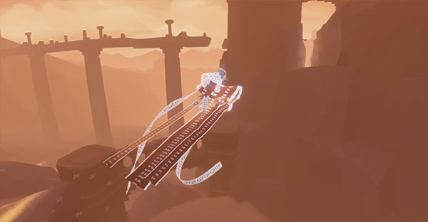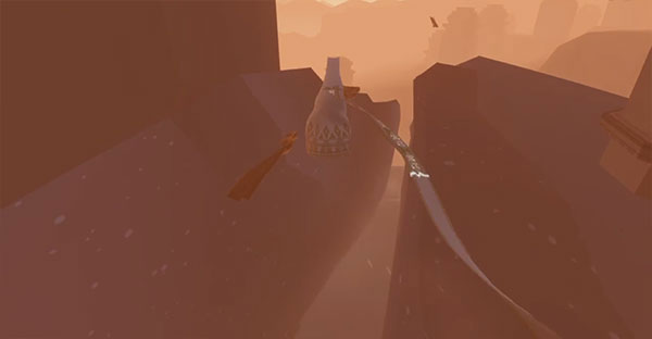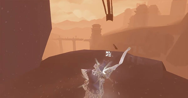 起跳的时候,恰好就会有风筝飞过来,你可以顺势搭个便车。但要注意,风筝送达目的地后,记得马上按下飞行按钮,不然很容易掉下去。到达之后,沿着这条小路滑行就可以,只是速度比较快,要对准了再拿东西。