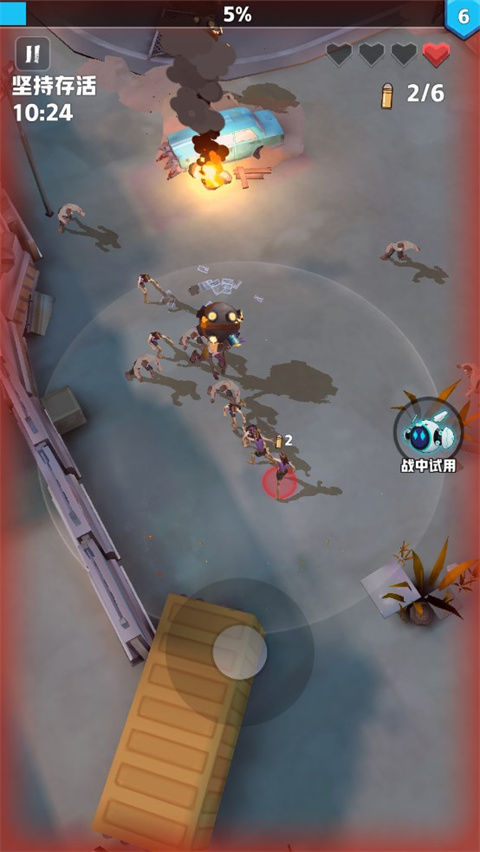 1、下载进入僵尸狂潮手游,首先我们通过滑动屏幕来控制角色移动;