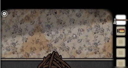 3、拿斧头将木头砍成块状,接着把木头置于壁炉下方,再用火柴点燃,这时就能看到壁炉上面有一把药匙。