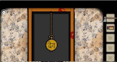 5、根据提示打开左边的柜子,会发现怀表,发送里面的时针数字是8,分针是5.