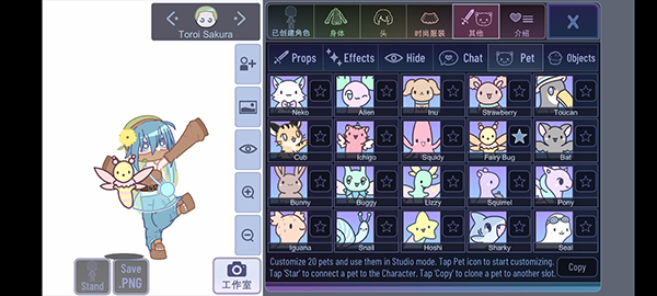 2、轻点宠物,从琳琅满目的众多小宠里,挑选一只,让它成为专属于你的萌宠吧。