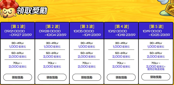 曾在《希望M》中拥有达到30级、50级、70级以上角色的玩家,将获得5波总计25,000颗蓝宝石的奖励。其中,达到70级以上的资深玩家,在第5波奖励中还可额外获得宠物召唤达成箱。如此丰厚奖励不容错过,快来官网领取吧!