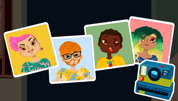 挑选一个背景,看着他们摆好姿势然后拍照!你还能把角色的照片存到相册里,之后再给它们进行造型设计。