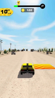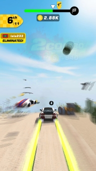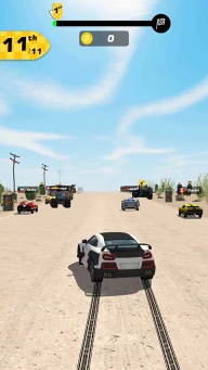 5、进入比赛对局后,我们要通过左右滑动屏幕,使车辆与前方车辆发生碰撞,以此提升自身名次并获取金币奖励。