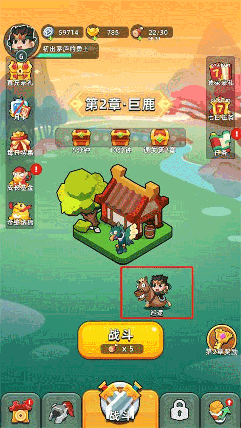 1、从游戏主页点击“巡逻”即可进入。