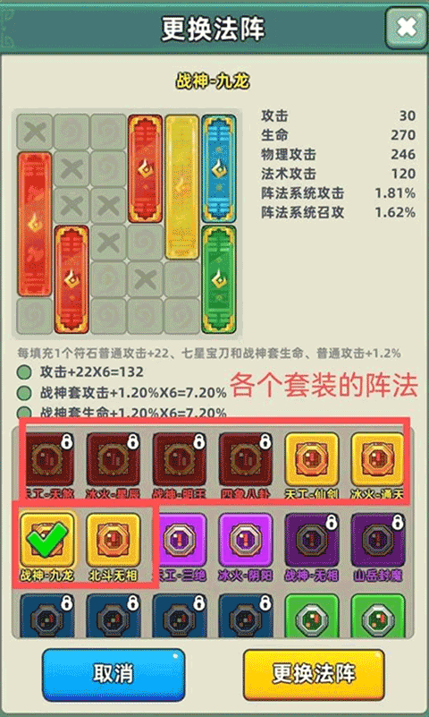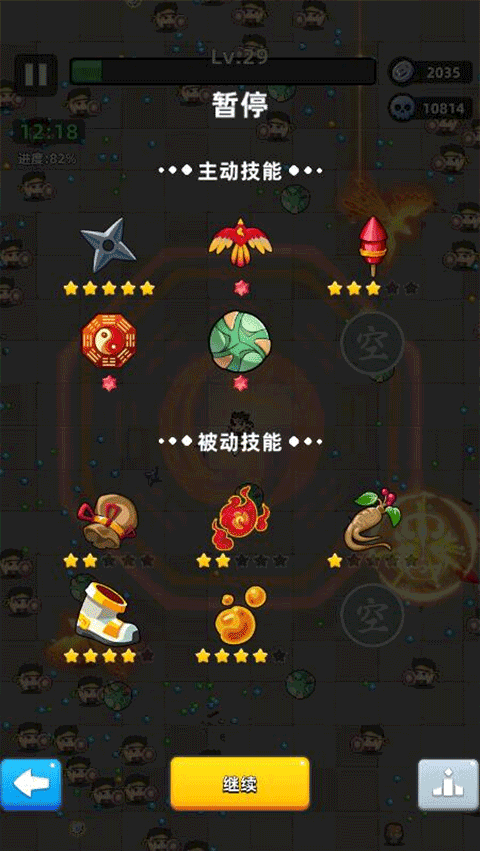 3、建议首选技能为八卦阵,此技能无冷却时间,可持续发射,能有效应对源源不断的敌人。而其他技能存在一定冷却时间,未选八卦阵的玩家,需凭借灵活走位来填补技能空档期,后期再逐步依据技能组合进行升级。
