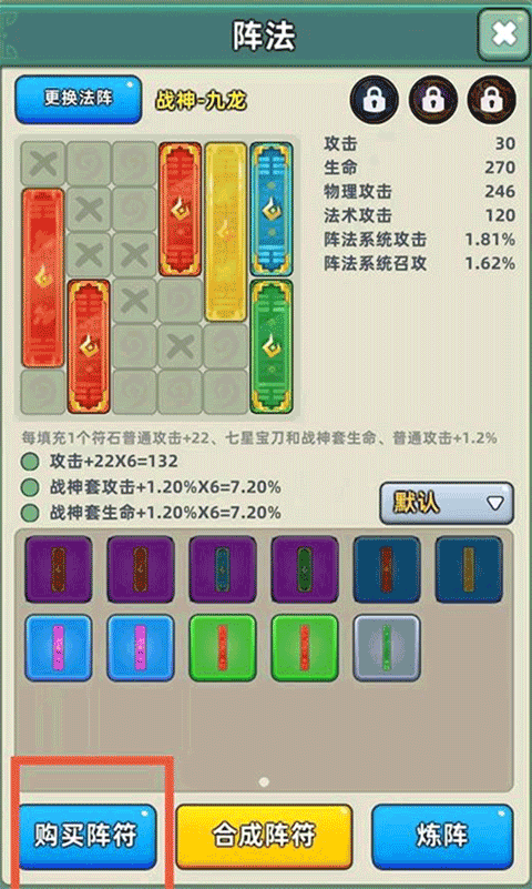 推荐开局选择八卦阵、梅花镖、爆燃烟花。按照保护存活、单体伤害、群体伤害的思路进行搭配,会取得不错的效果。