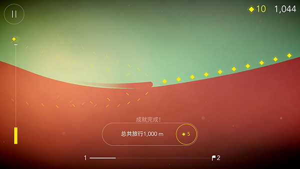 2、下坡时加速,上坡时减速。屏幕的上下区域分别对应着重力方向相反的世界,在其中一边的上坡,在另一边就自然变成了下坡。