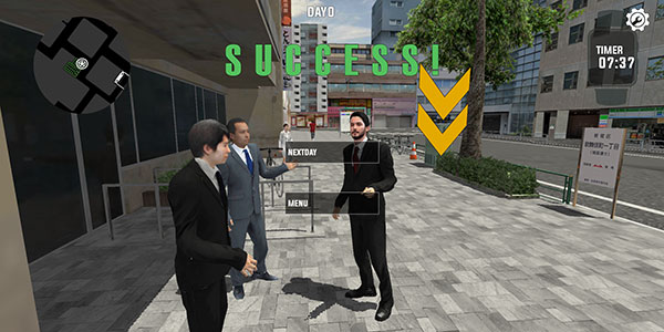 6、顺利到达公司楼下即可顺利过关,点击NEXTDAY按钮可以进行下一关的挑战。