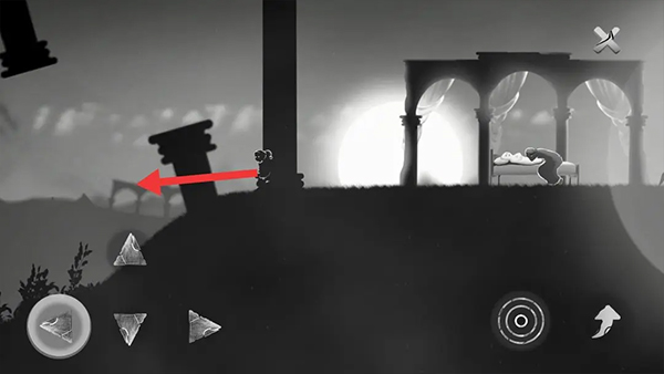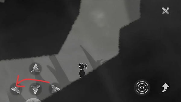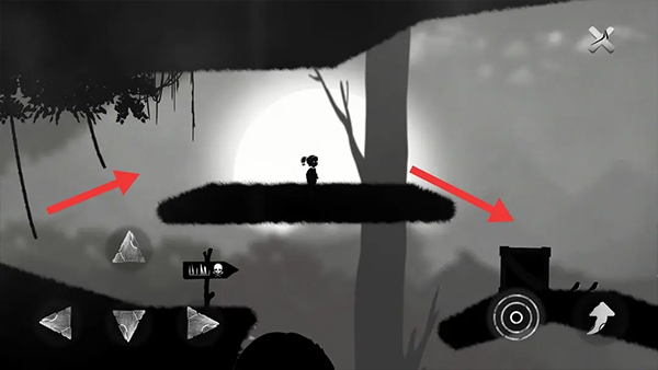 ⑤走到藤条旁,仿佛开启人类返祖模式,学着像猿猴那般荡起藤条。要留意操控方向键,让女孩的重心产生倾斜,从而能更靠近右边的藤条。