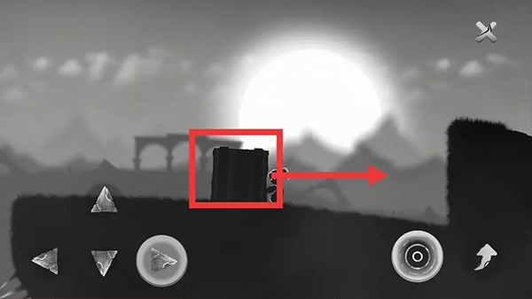 ①将石块推至右边小坡,踩在石块上翻越小坡。注意躲避恶魔。