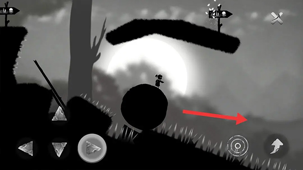 ①将石块推至右边小坡,踩在石块上翻越小坡。注意躲避恶魔。