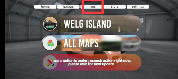 1. 来到游戏首页,点击“garage”,玩家能够通过点击左右键,挑选自己心仪的车辆。
