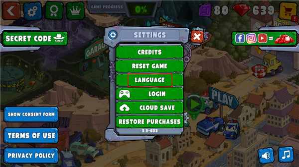 1、打开汽车吃汽车3最新版本,点击左上角【齿轮】图标,