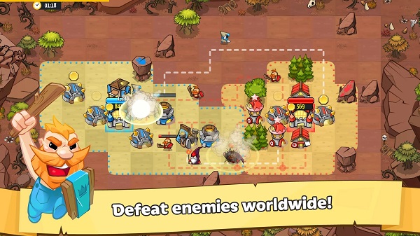 陛下,您瞧见战场对面那位可怜的玩家了吗?没错,那便是您的竞争对手。您需通过搭建塔楼、布置地雷、建造兵营,为您的部队开辟道路,进而与他们展开战斗,并指挥部队去摧毁敌方的城堡。
