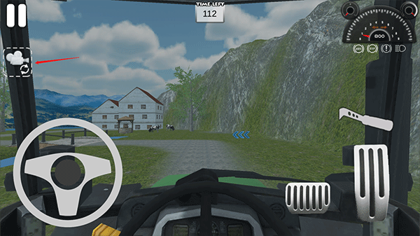 2、游戏里,左边方向盘用于操控汽车方向,右边踏板则分别负责后退和前进。
