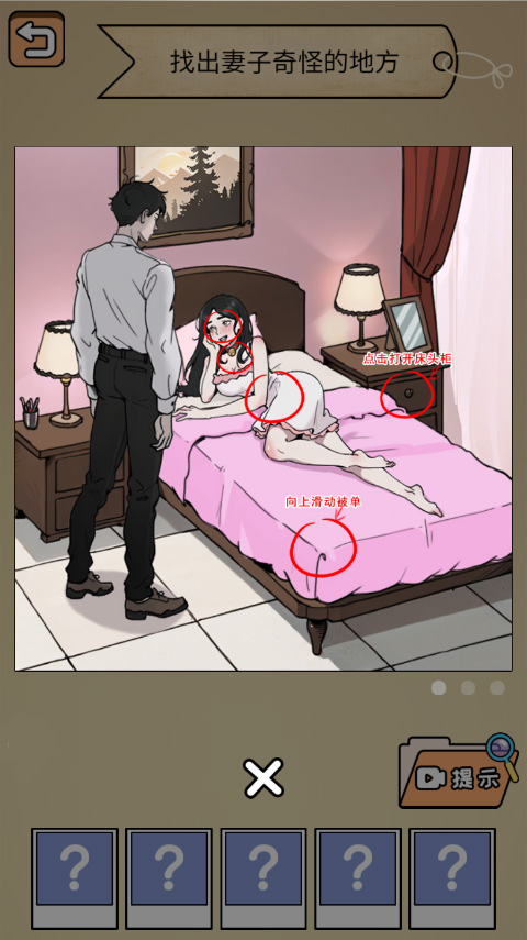 绯红的脸、脖子上的铃铛、性感裙子、打开床头柜以及向上滑动被单。