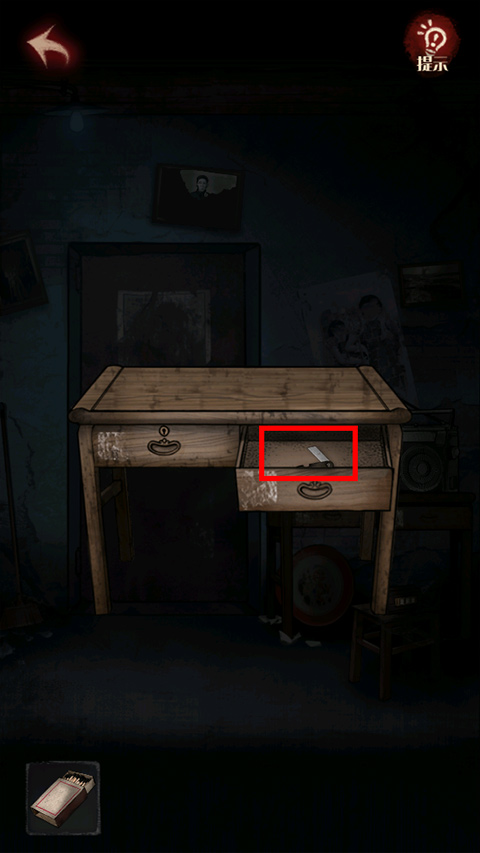 2、向右移动至铁门门口,在桌子右边的抽屉中获得【小刀】。