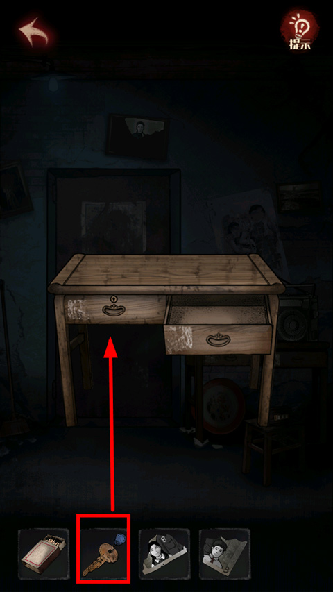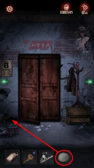 7、向右回到大门口,点击衣架下面的抽屉,使用【暗红钥匙】打开,获得【馒头】。