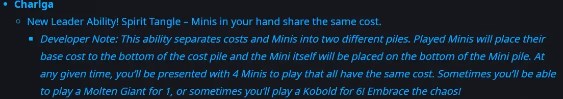 通常而言,在游戏里仅有一个卡牌队列,卡牌的费用作为卡牌的一项属性,与卡牌紧密相连。然而,卡尔加的首领能力却是创建一个费用队列,将卡牌的费用从卡牌属性中分离出来,使其单独构成一个队列。