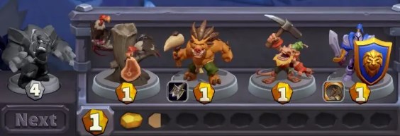 使用1费打出联盟步兵后,当前费用:4费,下一个费用:5费。