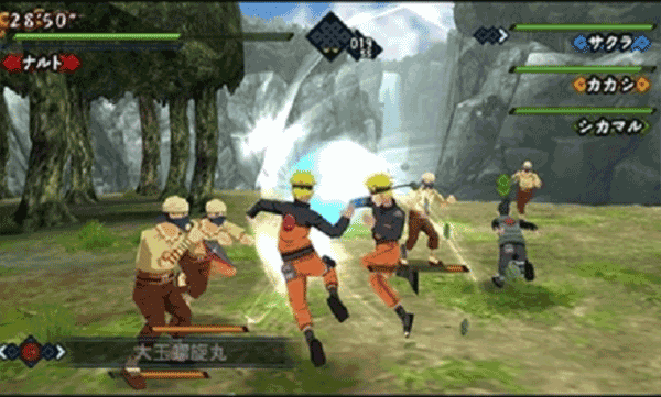 此次游戏收录了《火影》的一大特色,首次在系列中加入“四人一组”的小队要素。玩家们对这一要素想必在原作中早已十分熟悉,可编组攻击型、支援型、回复型等各类忍者,四人组成一队,去挑战护卫、追踪、讨伐等多种任务,通过携手协作发挥出强大的战斗力。