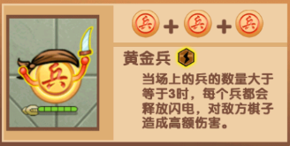当场上的兵的数量大于等于三时,每个兵都会释放闪电,对地方棋子造成高额伤害;