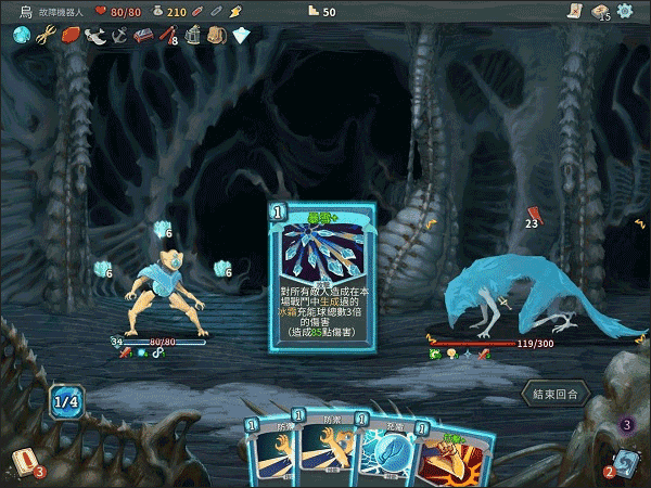 8、每个怪物头上会出现不同类型的符号,这些符号代表着怪物的下一个行动,比如对你造成10几点伤害,或者发动自身技能等等。你务必将这些因素纳入考虑,这样才能尽可能完美地击败对手。