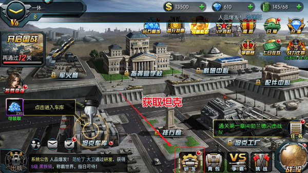 2、也可以通过屏幕首页的研发功能中的基础研发(抽奖)来获取坦克