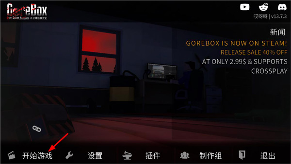 1玩家登录游戏,进入游戏主页面,在此页面可进行游戏设置、查看插件等操作,完成后点击“开始游戏”。