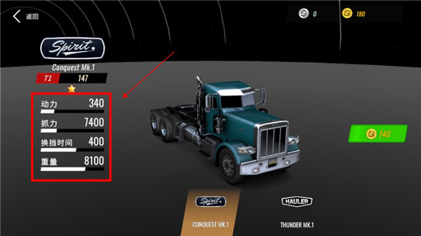 3、然后购买一辆初始卡车,卡车分为四个属性,不过前期也不重要,毕竟只是新手车辆,