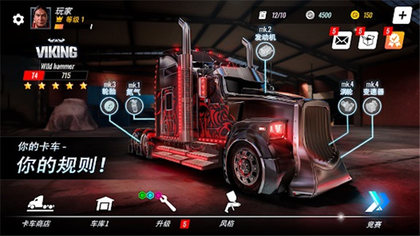 对油漆、车轮、前照灯、后视镜、保险杠以及管子等进行更换。选用最优质的零件,将您卡车的功率提升至最大。每辆卡车都具备动力、抓地力、换挡时间和重量这四个特性。对每一项特性进行升级,再配合使用nitro,展现出最佳速度。