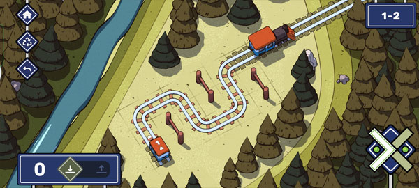 Railbound,也就是轨道连结,是一款轻松有趣的铁轨拼接益智类手游。这款游戏以清新的卡通风格打造,讲述了两只狗狗搭乘火车环游世界的故事。游戏里的铁轨与车厢,模样酷似小孩子玩耍的积木,而以和小动物们一同环游世界为主题的插画,也十分招人喜爱。