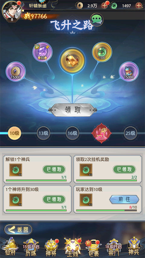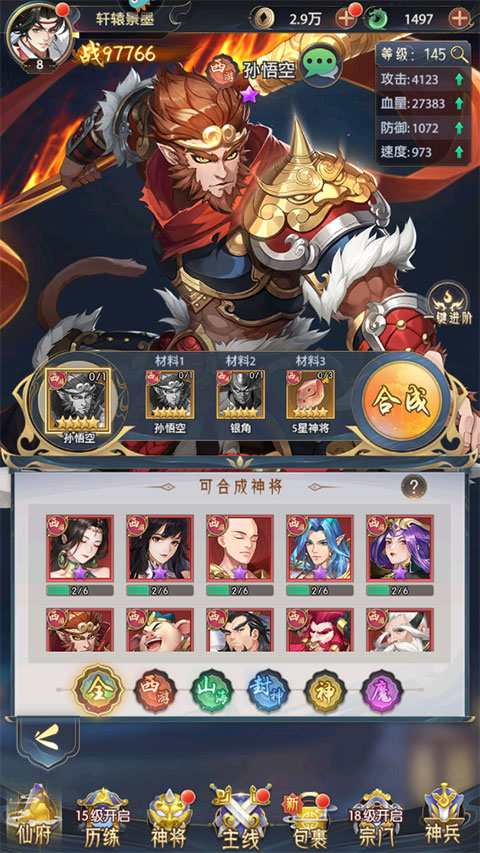 2、升星阁具备将低星神将进阶成同名高星神将的功能,具体而言,4星神将能够进阶为5星,5星神将能够进阶为6星。