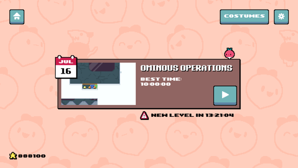 《每日萝卜爸爸》(Daily Dadish)是一款可爱像素风的闯关游戏。在游戏中,玩家操控萝卜爸爸开启冒险之旅,寻找自己的孩子。这一过程里,玩家得操控萝卜爸爸避开诸多陷阱与障碍,助其顺利通关。
