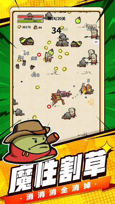 2、灵活移动,歼灭源源不断的对手,疯狂的操作方式带来更多乐趣。