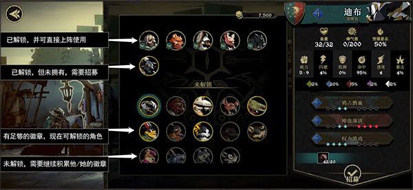 已解锁区域(不带小喇叭)内的角色,你均可招募。角色死亡后,你可按需挑选招募。招募所得为1级全新角色。
