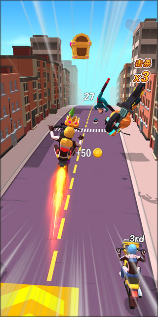 4、当你向对手发起攻击时,对手同样会回击你,务必多加小心,否则很可能会从摩托车上跌落。