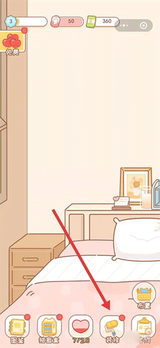 3、接着回到房间,你能够对房间展开装修,新抽到的盲盒同样可当作装饰物来摆放。