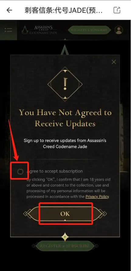 5、勾选同意条款后点击【ok】就预注册完成啦。游戏内容: